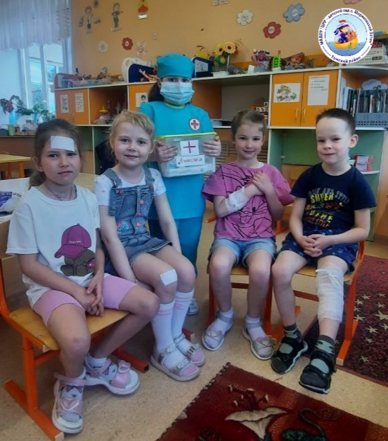 Маленькие "медсестры" тщательно осматривали "больных", умело бинтовали "раны" и использовали лейкопластырь, чтобы вылечить ссадины и царапины.